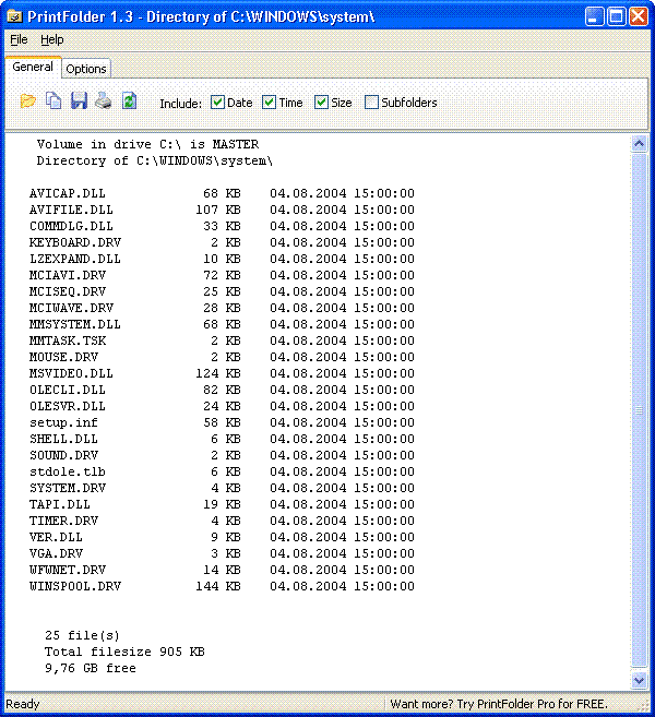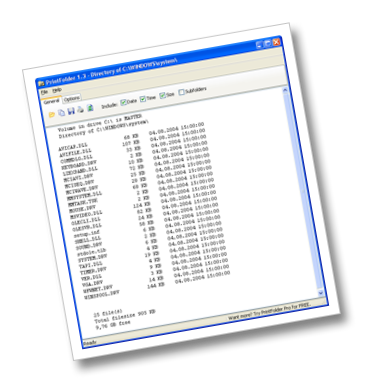 Using Windows Explorer, printing a list of files is hard work. In fact, it's almost impossible. PrintFolder Pro is a fast and efficient utility that lets you print a list of files located in any folder - and in any number of subfolders.